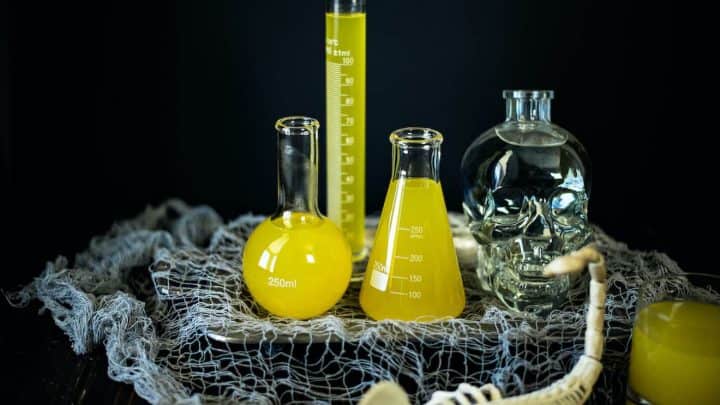 Lemon jello adds a bright hue to this drink along with pineapple juice and optional vodka make this drink perfect for adults and children that will put the 'sting' into your Halloween party.