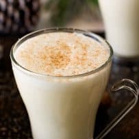 Because this is a traditional recipe, it is made with eggs. The egg yolks are cooked above the FDA recommended temperature of 145°F/63°C to kill any bacteria. The whites are not cooked and if you don’t feel comfortable adding them to eggnog, you can leave them out. The only difference is the texture will be different, it will be thinner and you wont get the foamy head on top. You can pasteurize the eggs before using. See below for instructions.