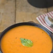 30 minute tomato basil soup is comfort food in a snap with sweet tomatoes and basil that has a long, slow-cooked taste.