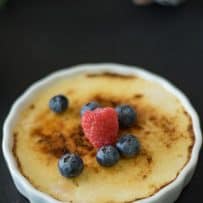 Crème Brûlée certainly can hold it’s own and doesn’t need any adornments, but I do like to serve them topped with fresh berries.