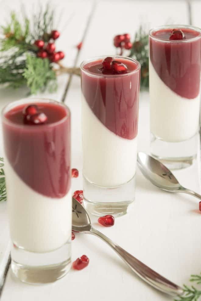 Pomegranate panna cotta is an easy, yet striking dessert layered with orange infused panna cotta with a pomegranate juice topping.